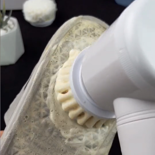 Ich nutze die Bürste für meine weißen Leder-Sneaker. Mit dem Schwamm-Aufsatz geht der Schmutz am Rand mühelos weg, ohne das Material anzugreifen. Mega Zeitersparnis!