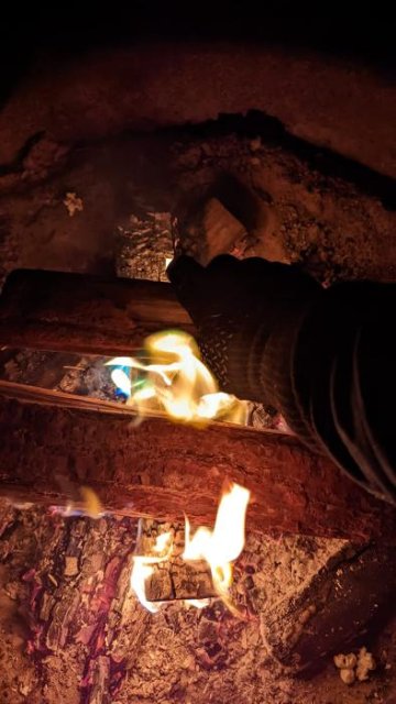 Ich war auf einem Campingausflug und hatte keinerlei Probleme, Holzscheite direkt ins Feuer zu legen. Der Handschuh wurde zwar warm, was aber verstÀndlich ist, da meine Hand direkt im Feuer war.
